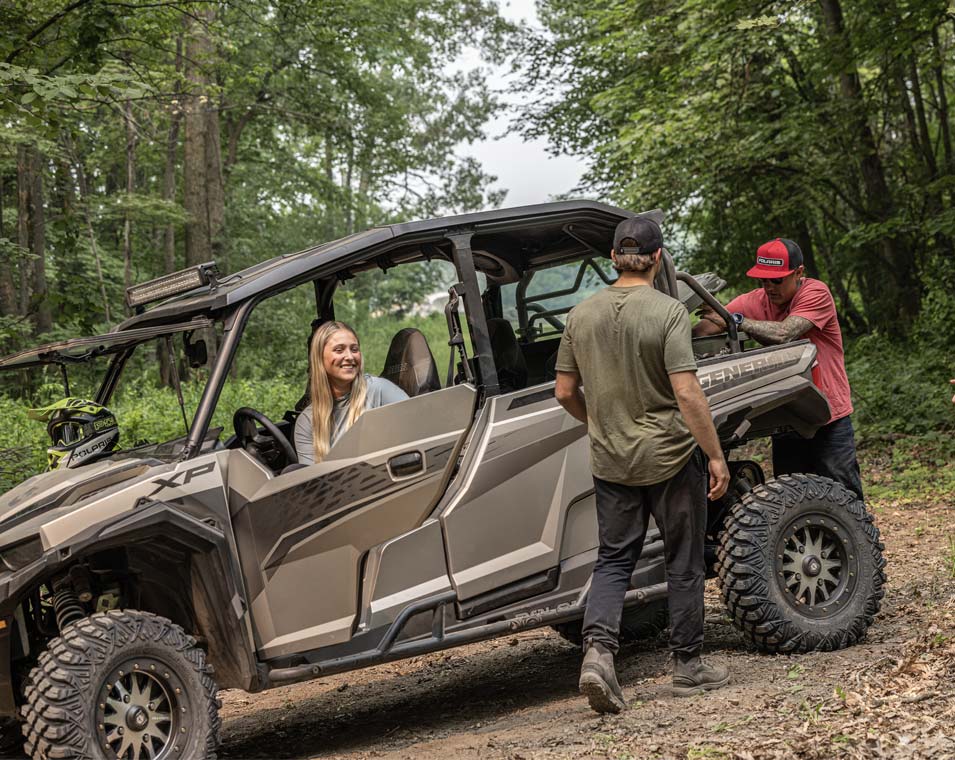 Cuando corres por senderos en la GENERAL XP 1000, su chasis inspirado en el alto desempeño, el motor de 100 HP y la tracción AWD de acoplamiento rápido lo dan todo.