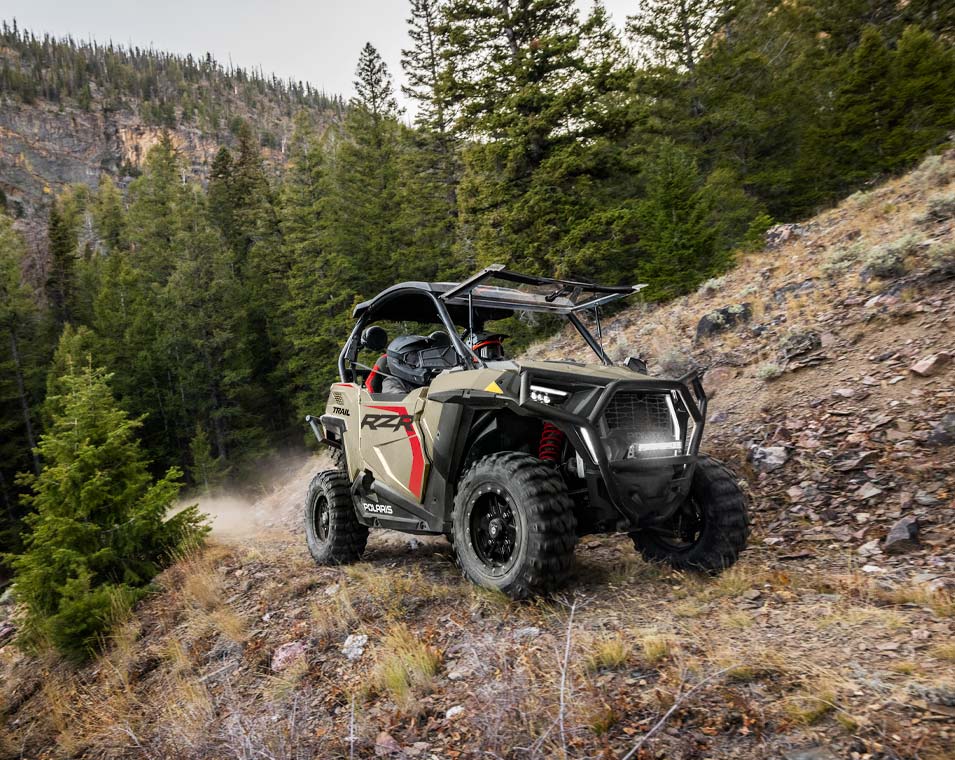 RZR Trail presume el ancho más delgado de nuestra línea, agilidad precisa, aceleración instantánea y comodidad durante todo el día.