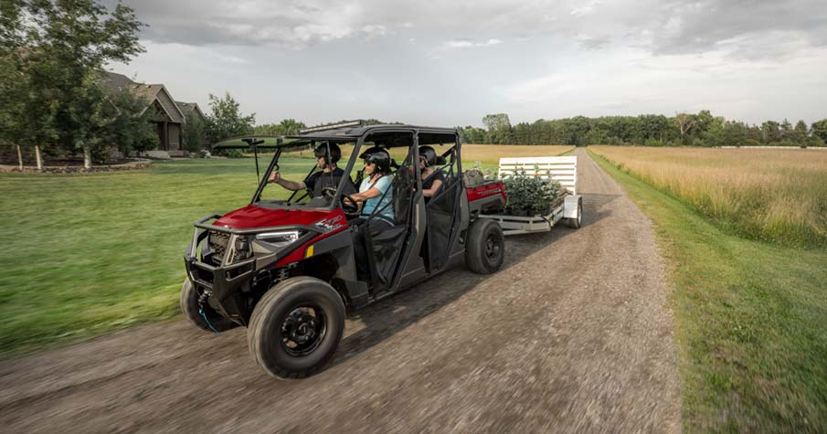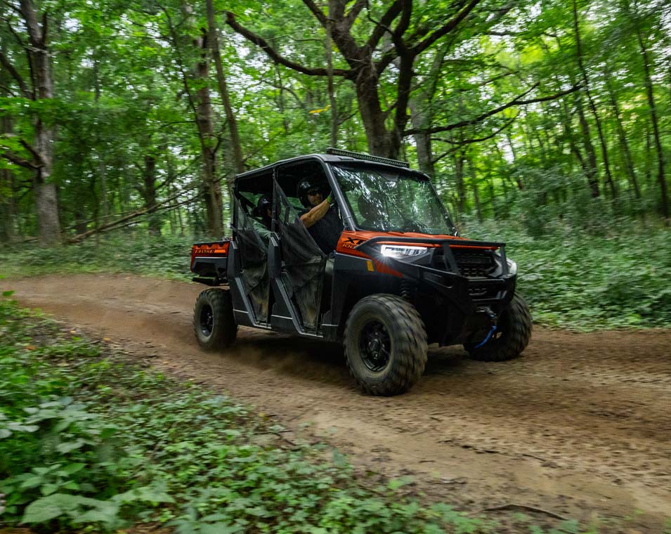 RANGER XP 1000 está diseñado pensando en tu comodidad. Disfrutarás el techo instalado de fábrica, las puertas de malla fáciles de usar y los cómodos asientos contorneados. Disfruta de RANGER CREW XP 1000 con amigos en su gran espacio para 6 pasajeros.