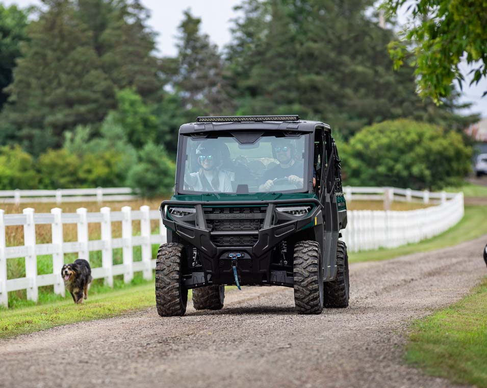 - Defensa Delantera con Soportes Para Winch y Arado Integrados, Asientos Premium Bordados con Respaldos Contorneados y Logotipo Polaris Bordado, Winch Polaris HD de 4500 lbs con Cuerda Sintética, Autostop y Control Remoto, Techo Poly Sport Instalado de Fábrica, Redes Para Cabina con Pestillo Individual, Sistema Polaris Pulse Electrical (6 Posiciones), Puerto de Carga para Accesorios de 12V, Puerto Trickle para Batería, Puerto USB, Insignia NFC Delantera